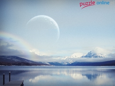 Puzzle Tęcza, Jezioro, Góry, Księżyc