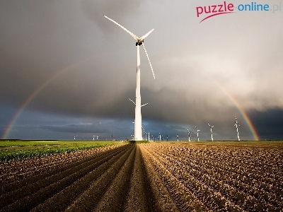 Puzzle Tęcza, Turbiny Wiatrowe, Pole, Krajobraz