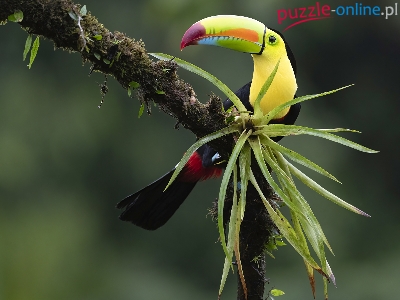 Pak, Gałąź, Tukan tęczodzioby, Rozmycie, Zbliżenie