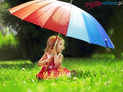 Puzzle Tęczowy, Mała, Dziewczynka, Parasol