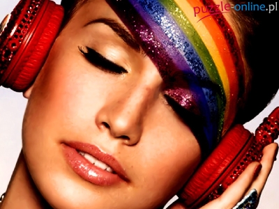 Puzzle Tęczwe, Kobieta, Słuchawki, Czoło