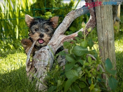 Puzzle Terrier, Pies, Yorkshire, Trawa
