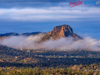 Thumb Butte, Stany Zjednoczone, Góra, Drzewa, Prescott, Arizona, Mgła