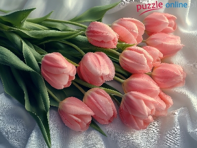 Puzzle Listki, Różowe, Tulipany, Tkanina