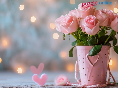 Serca, Kwiaty, Bukiet, Tło, Różowe, Róże, Wazon