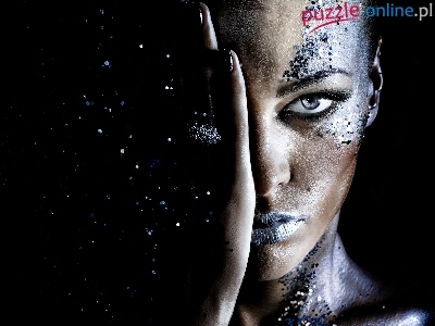 Zakryte, Tło, Brokat, Oko, Makijaż, Kobieta, Dłoń, Ciemne