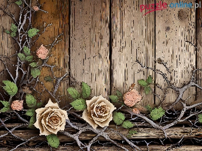 Konary, Róże, Kwiaty, Tło, 2D, Deski