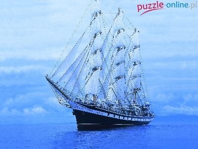 Puzzle tło, Żaglowiec, niebieskie, trójmasztowiec