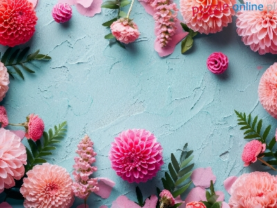 Puzzle Niebieskie, Różowe, Dalie, Tło