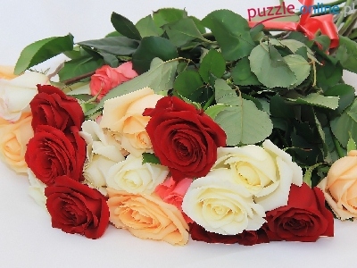 Puzzle Tło, Bukiet, Róże, Wstążka