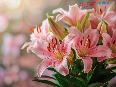 Puzzle Rozmyte, Różowe, Lilie, Tło