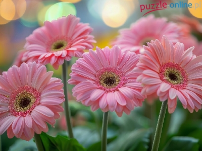 Puzzle Różowe, Kwiaty, Gerbery, Tło