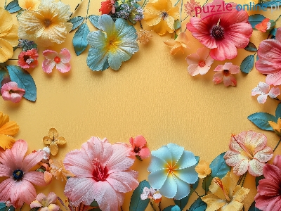 Puzzle Żółte, Kolorowe, Kwiaty, Tło
