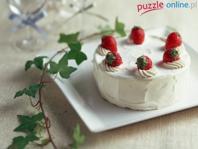 Puzzle Åšmietanowy, Tort, Truskawki