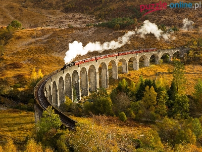PociÄ…g parowy, Wiadukt Glenfinnan, Wielka Brytania, Szkocja, Tory