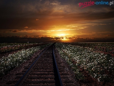Puzzle Tory, Zachód, Słońca, Kwiaty