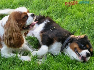 Puzzle Toy Spaniel Angielski, Dwa, Pieski, Trawa