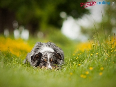 Puzzle Trawa, Owczarek Australijski, Łąka, Kwiaty