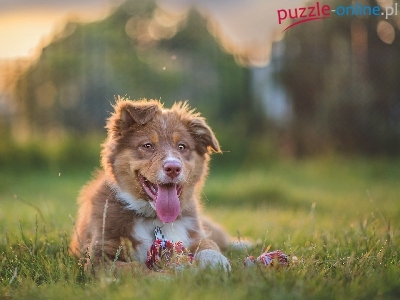 Puzzle Trawa, Owczarek australijski, Łąka, Zabawka