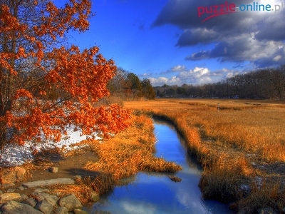 Trawa, Rzeka, Drzewo, Jesień, Łąka, Las