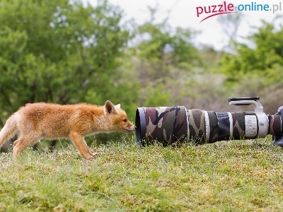 Puzzle Trawa, Lis, Aparat, Drzewa