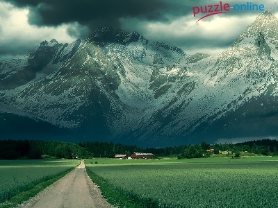 Puzzle Trawa, Góry, Chmury, Droga
