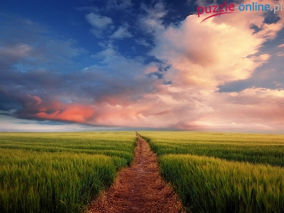 Puzzle Droga, Trawa, Chmury