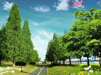 Puzzle Trawa, Droga, Drzewa, Kwiaty