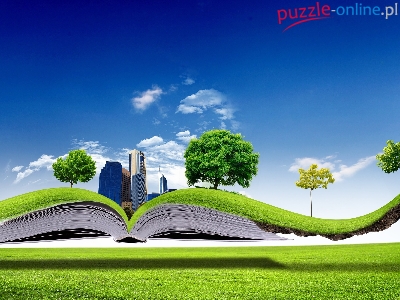 Trawa, Chmur, Książka, Drzewa, Drapacze