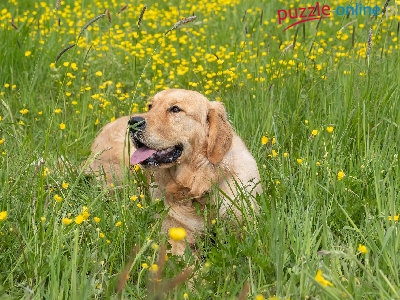 Puzzle Golden retriever, Pies, Trawa