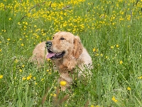 Golden retriever, Pies, Trawa