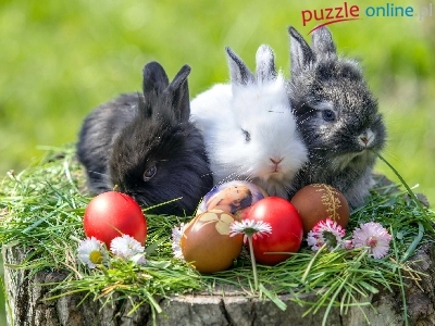 Jajka, Trawa, Drzewa, Stokrotki, Króliki, Wielkanocne, Pień