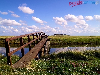 Puzzle Trawa, Rzeka, Kładka, Chmury