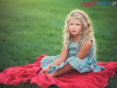 Trawa, Smutna, Dziewczynka, Kocyk, Spojrzenie