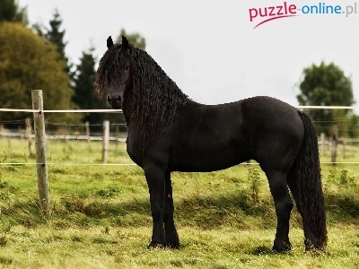 Puzzle Trawa, Czarny, Koń, Ogrodzenie
