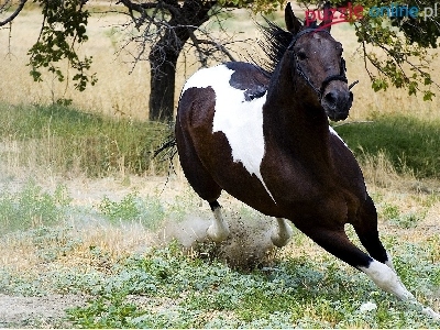 Puzzle Trawa, Galopujący, Koń, Drzewo