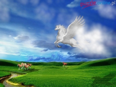 Puzzle Trawa, Pegaz, Konie, Niebo