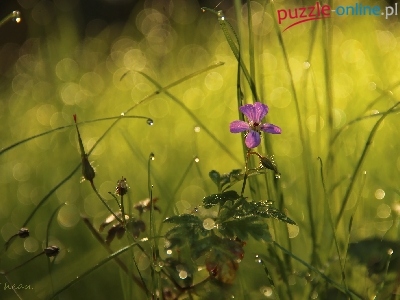 Puzzle Trawa, Fioletowy, Kwiatek, Bokeh