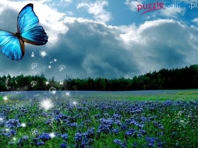 Puzzle Trawa, Motyl, Kwiatki, Łąka