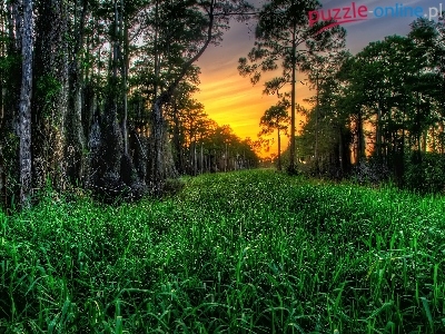 Trawa, Słońca, Stary, Las, Zachód