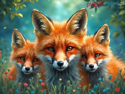 Trzy, Trawa, Lisy, Grafika, Kwiaty