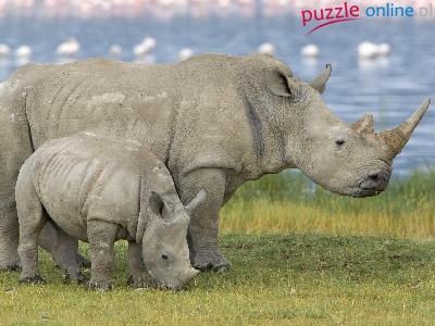 Puzzle Trawa, Dwa, Nosorożce, Woda