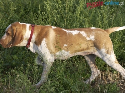czerwona, trawa, Wyżeł włoski krótkowłosy, Bracco italiano, obroża