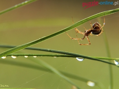 Puzzle Źdźbła, Pająk, Trawa, Krople