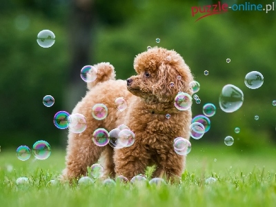 Puzzle Trawa, Pies, Pudel, Bańki