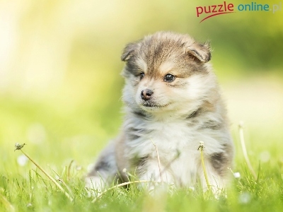 Puzzle Trawa, Szczeniak, Fiński lapphund, Rozmyte tło
