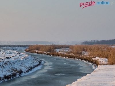 Puzzle Śnieg, Rzeka, Trawa, Zima