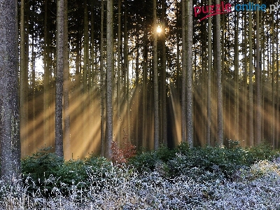 Puzzle Trawa, Drzewa, Promienie słońca, Las