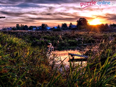 Puzzle Trawa, Zachód, Słońca, Chmury