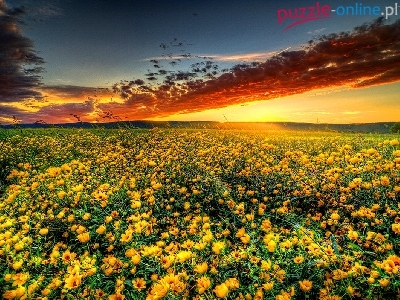 Puzzle Trawa, Zachód, Słońca, Kwiatki